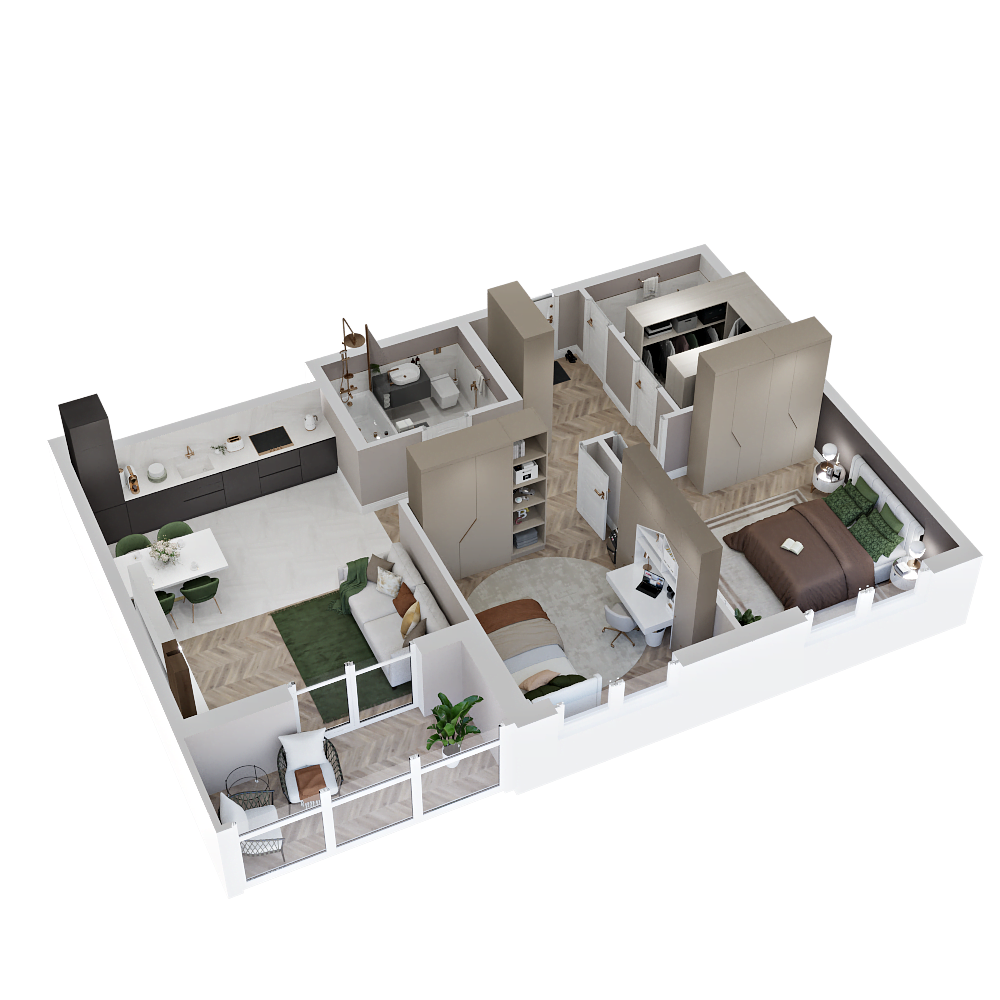Квартиры в комплексе продуманы под различные варианты расстановки мебели и оптимальные маршруты перемещения. Комнаты правильной прямоугольной формы, близкой к квадрату. Отсутствуют лишние углы и выступы.